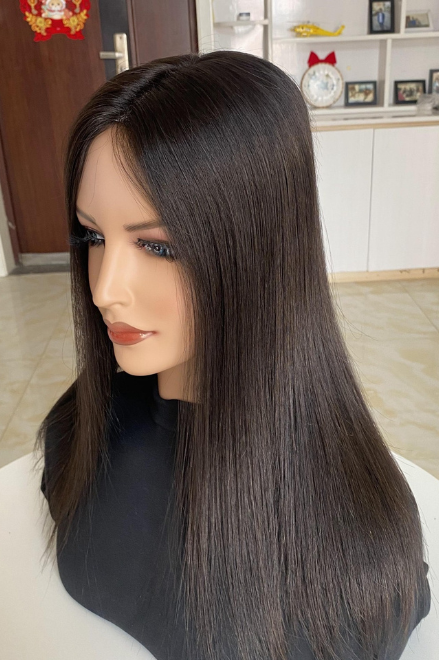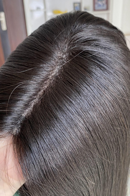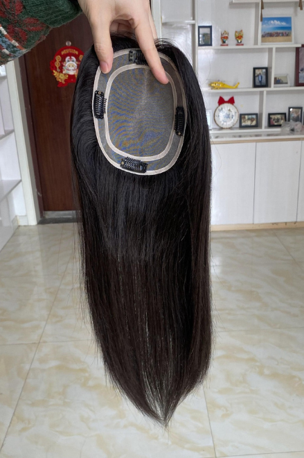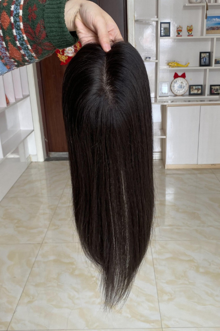 Ce topper noir profond est particulièrement recommandé pour les femmes ayant une alopécie androgénétique, une perte de cheveux progressive ou une perte de densité liée au stress.
